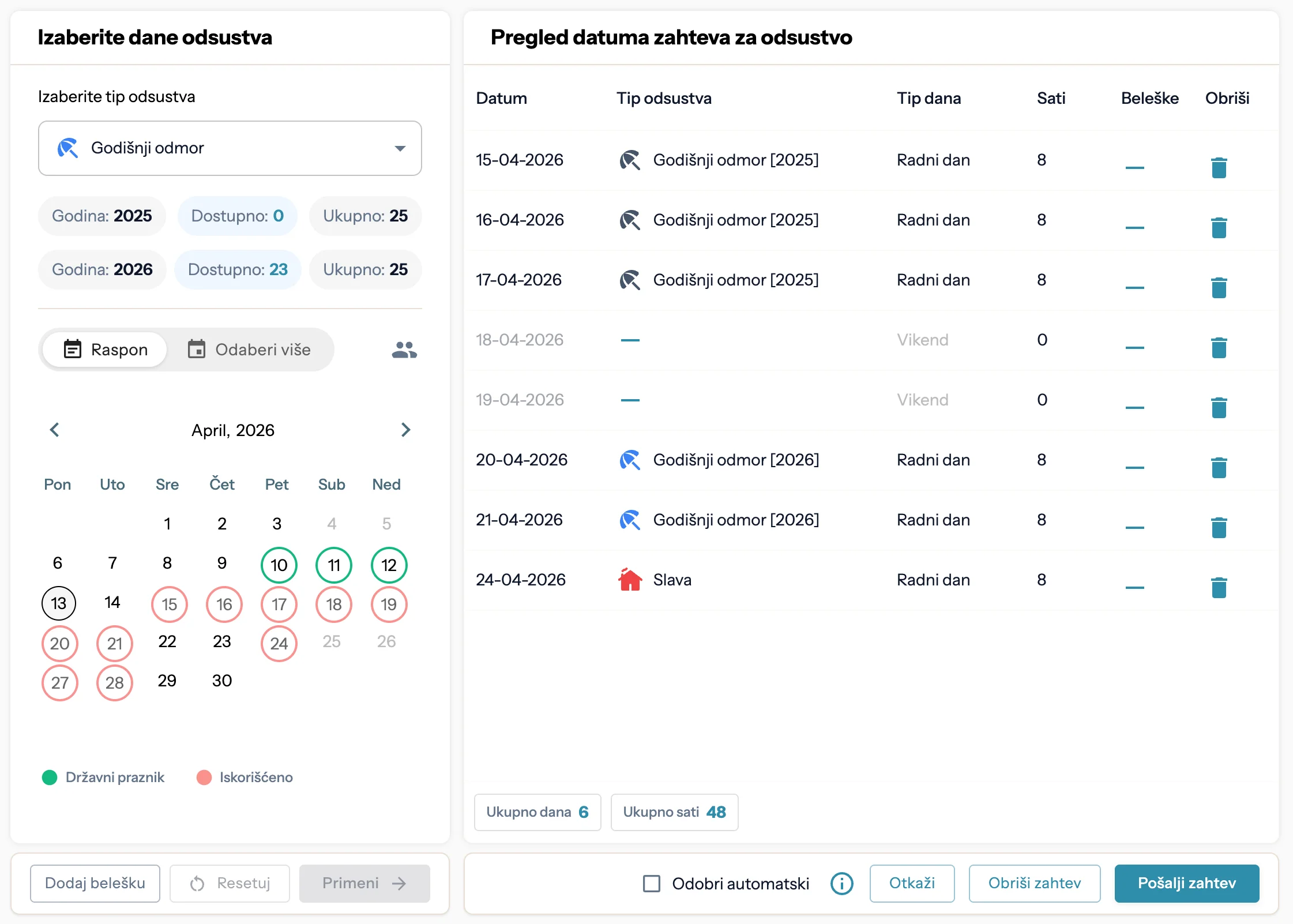 Efikasno i lako kreiranje zahteva za više tipova odsustva